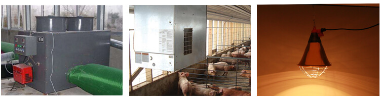 | Pig house heating is divided into two types: central heating and local heating. Central heating generates heat medium from a central heating unit, which then transports the heat medium to the radiator in the pig house. Local heating has hot water heating floor, electric heating plate, infrared heat lamp and so on. |