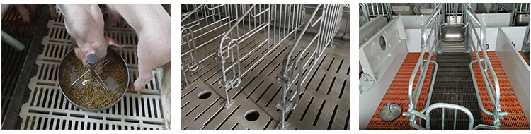 Modern pig farms generally lay a leaking manure floor on the manure urinal. After the pigs urinating and defecating on the floor, the urine flows along with the gap, and the faeces automatically falls into the dropping pit when it is stepped on by the pigs. That avoid contact between pigs and feces, and preventing and reducing the occurrence of the epidemic diseases. Slat floor has various shapes and is usually made into blocks, strips or netting. The materials used include concrete, metal and plastic. |