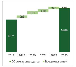 Динамика производства свинины, РФ,тыс. тонн