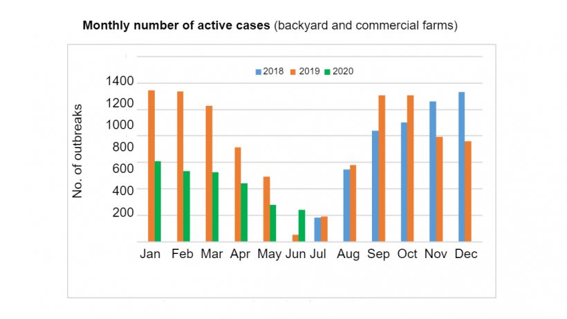 Active ASF cases are down from the beginning of the year, but still high compared to last year.