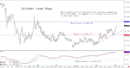 October lean hog futures--$55.00 to $60.00, and with a sideways-higher bias.