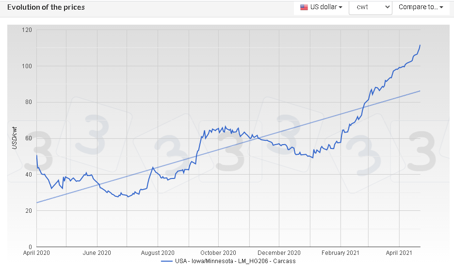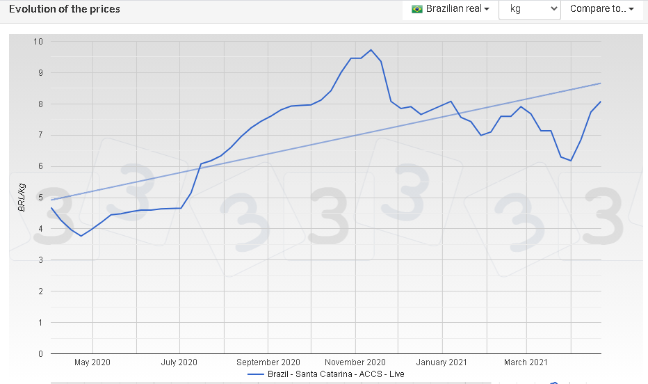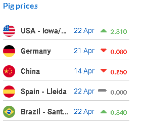 Pig Prices in the US, Germany, China, Spain and Brazil