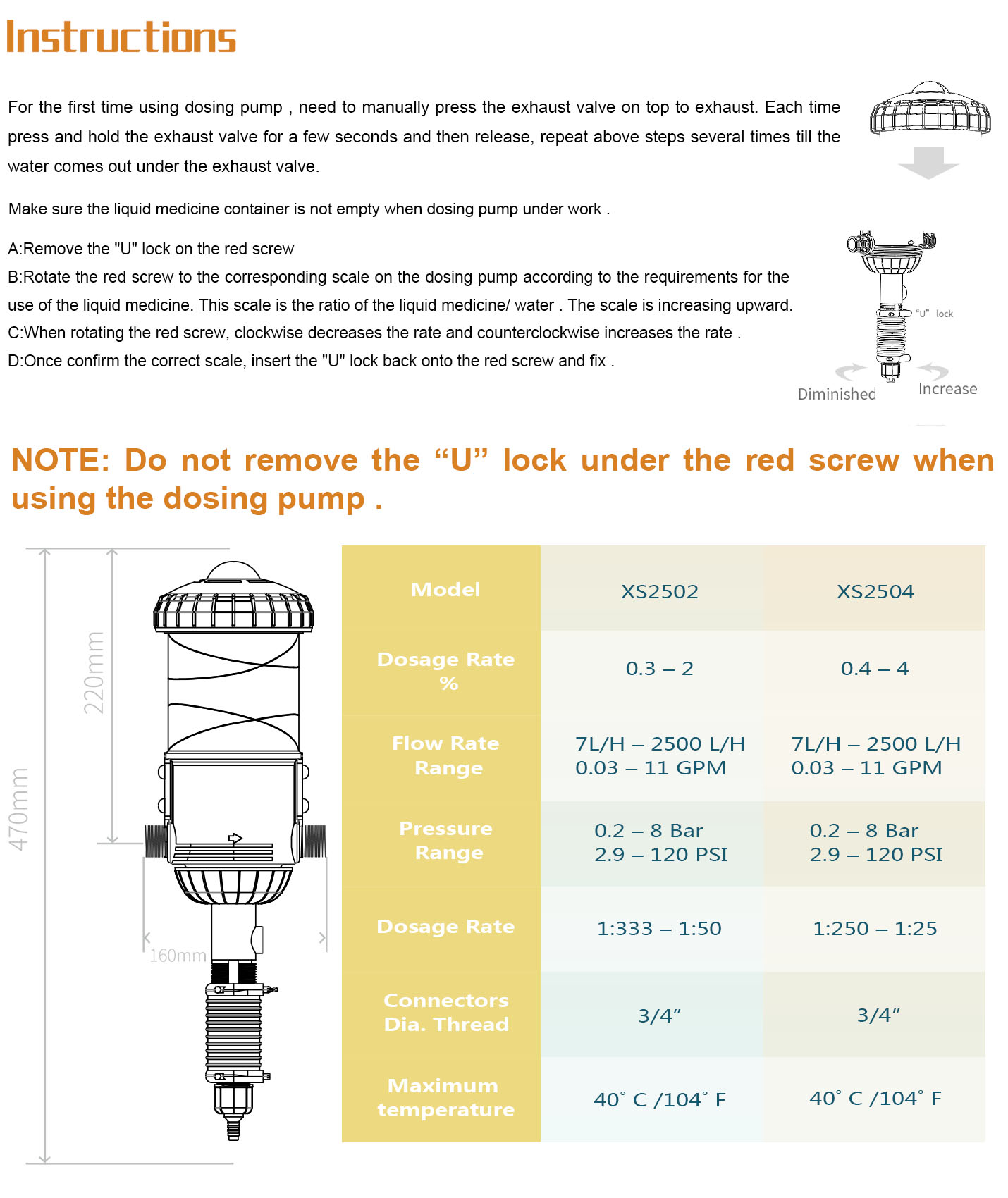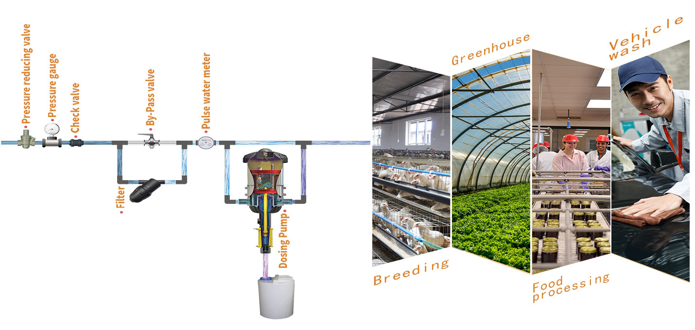 The SaveWater Dosing Pumps for livestock ensure that the dosage is proportional through drinking water, which is a scientific method of dosing. For most kinds of livestock , the SaveWater dosing pumps will provide dosing treatments with: