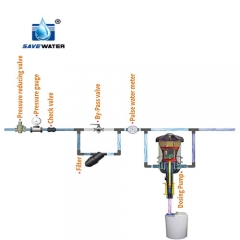 The proportionality of SaveWater dosing pumps fix the correct dose rate independently , the water pressure and water flow variations (animal consumption) have no impact with it.