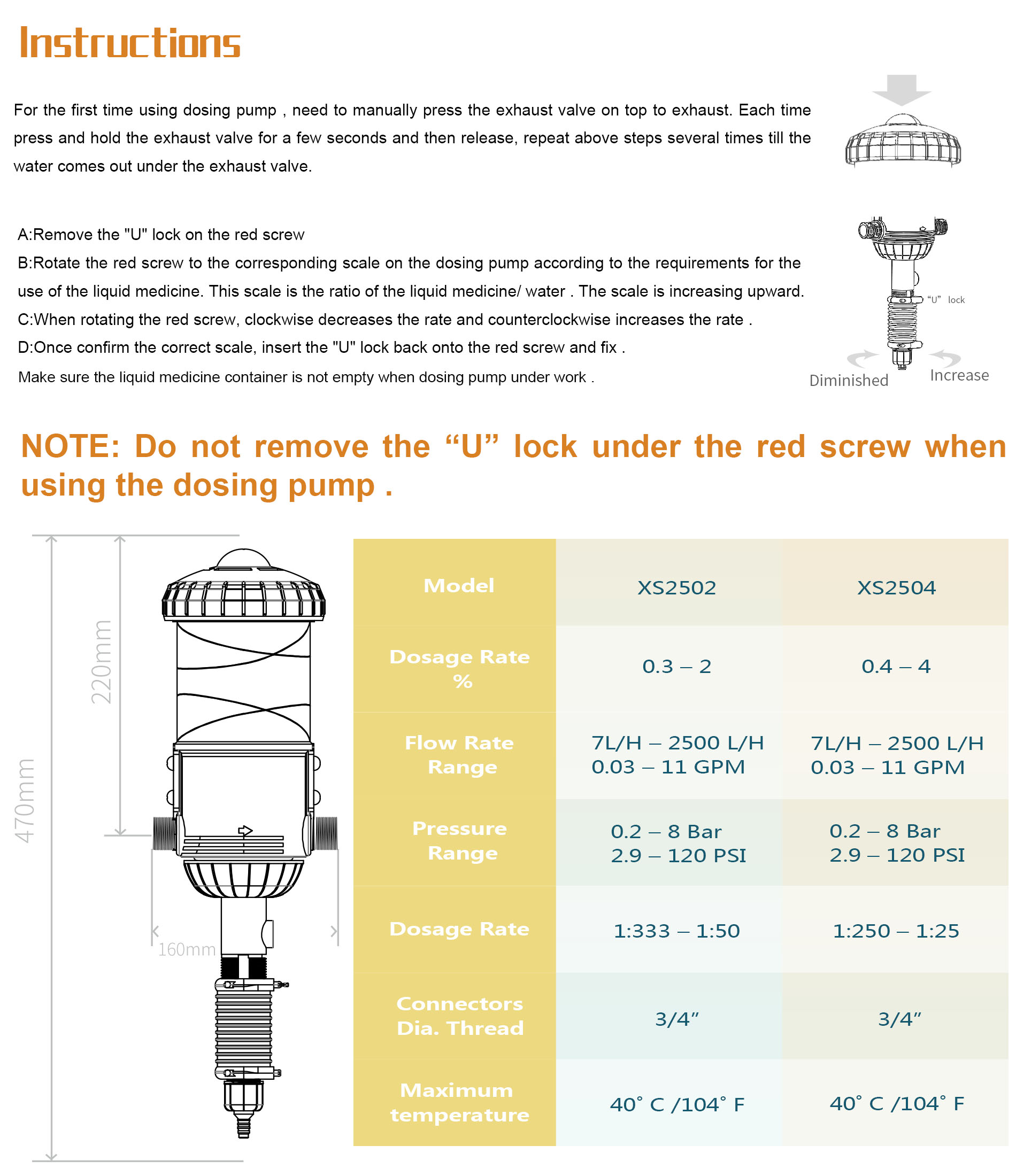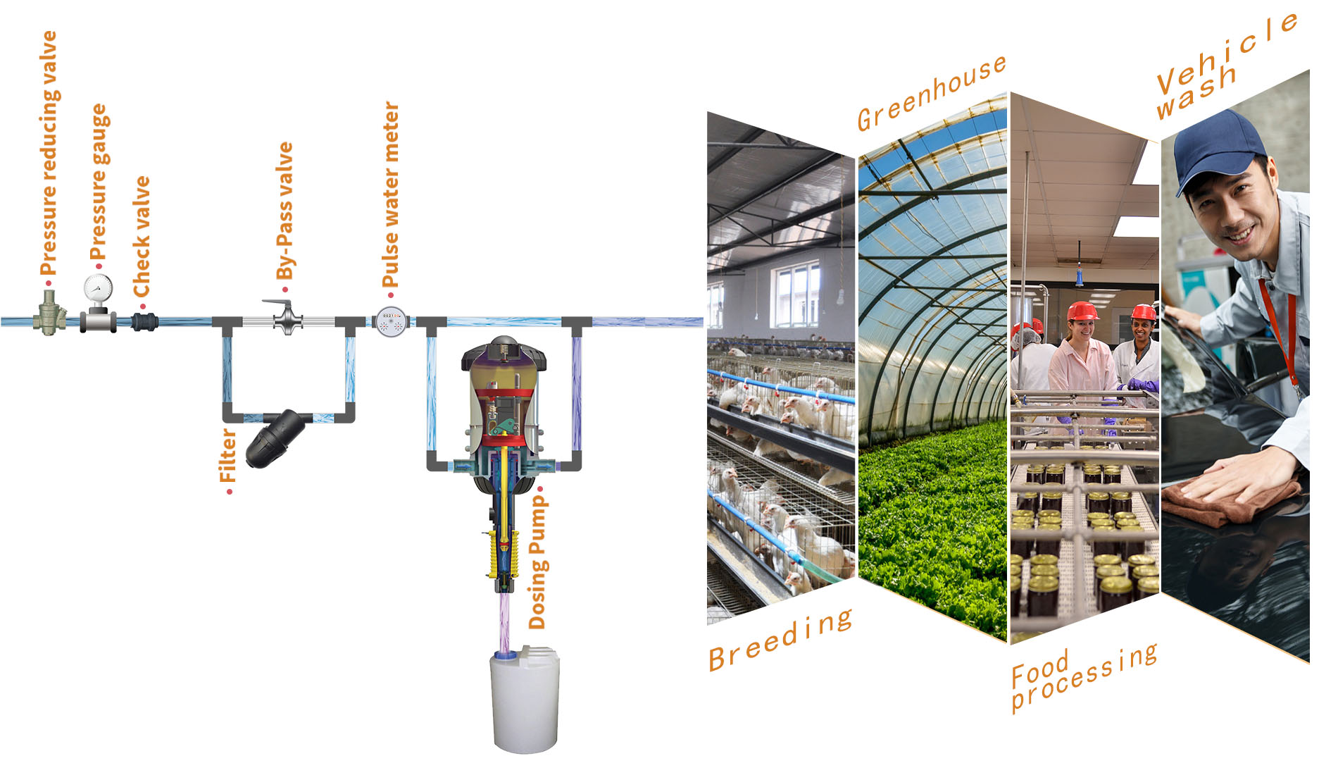 The SaveWater Dosing Pumps for livestock ensure that the dosage is proportional through drinking water, which is a scientific method of dosing. For most kinds of livestock , the SaveWater dosing pumps will provide dosing treatments with: